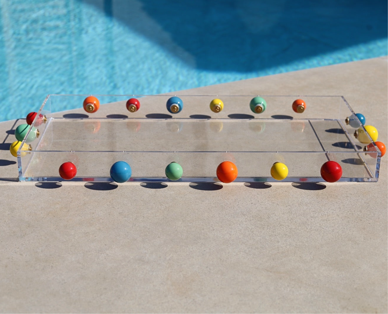 Alegria em forma de decoração! A Bandeja Acrílica Collorful traz um design leve e divertido, com esferas coloridas aplicadas nas laterais que dão um toque moderno e descontraído à peça. O contraste entre o acrílico transparente e as bolinhas em tons vibrantes transforma a bandeja em um verdadeiro destaque na decoração.