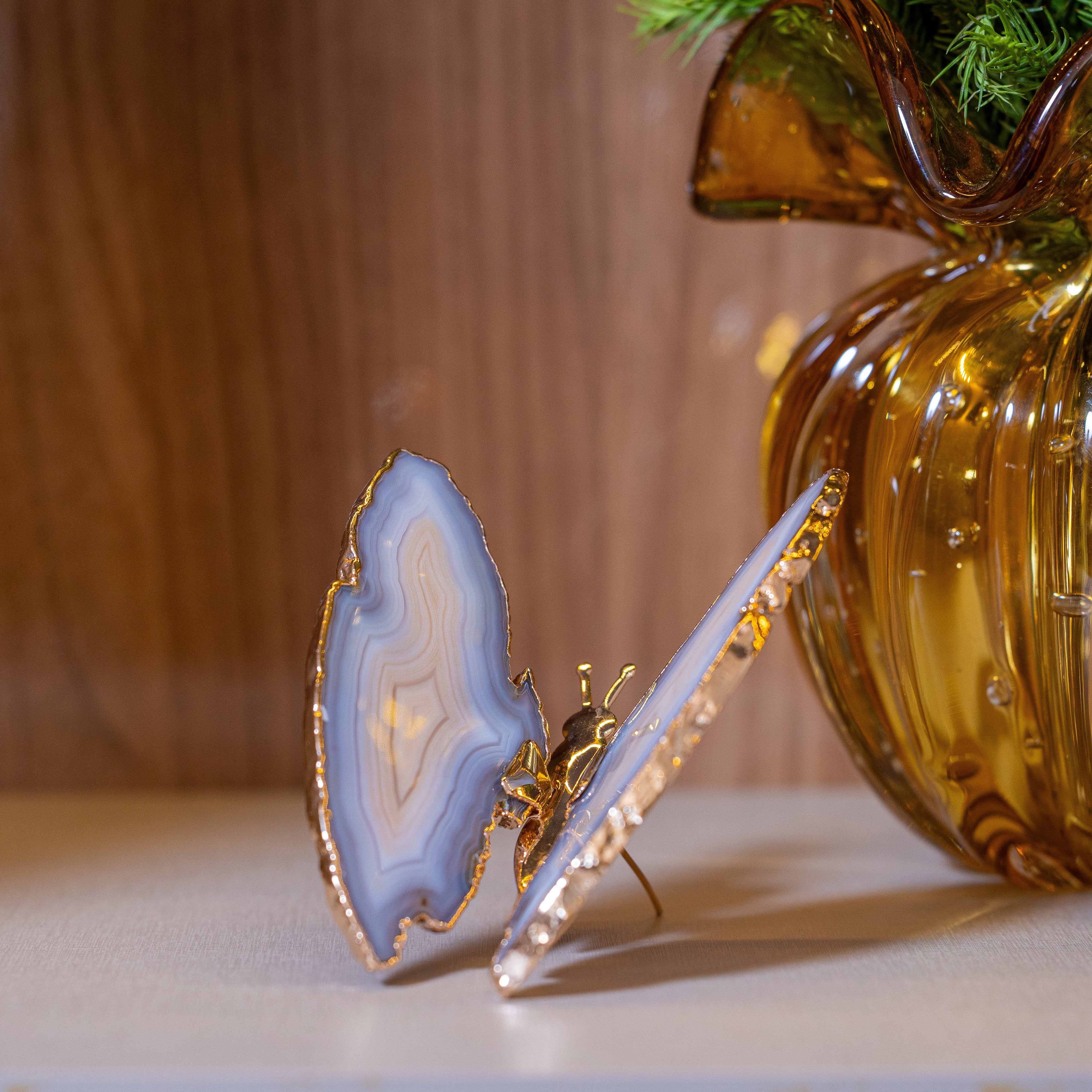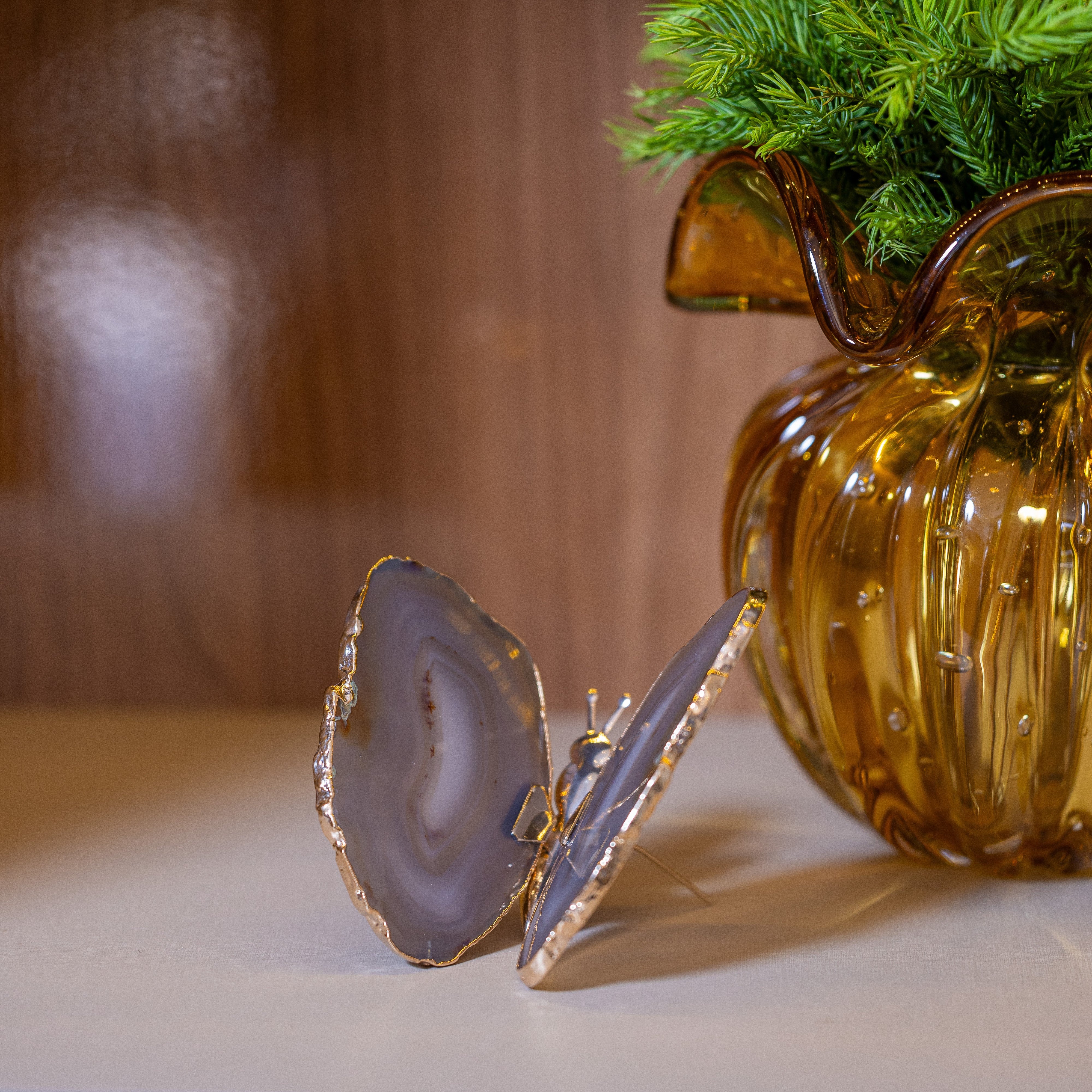 Perfeita para compor aparadores, mesas de centro, nichos ou escrivaninhas, a borboleta em ágata agrega elegância e personalidade ao décor, criando pontos de destaque com sutileza e requinte.