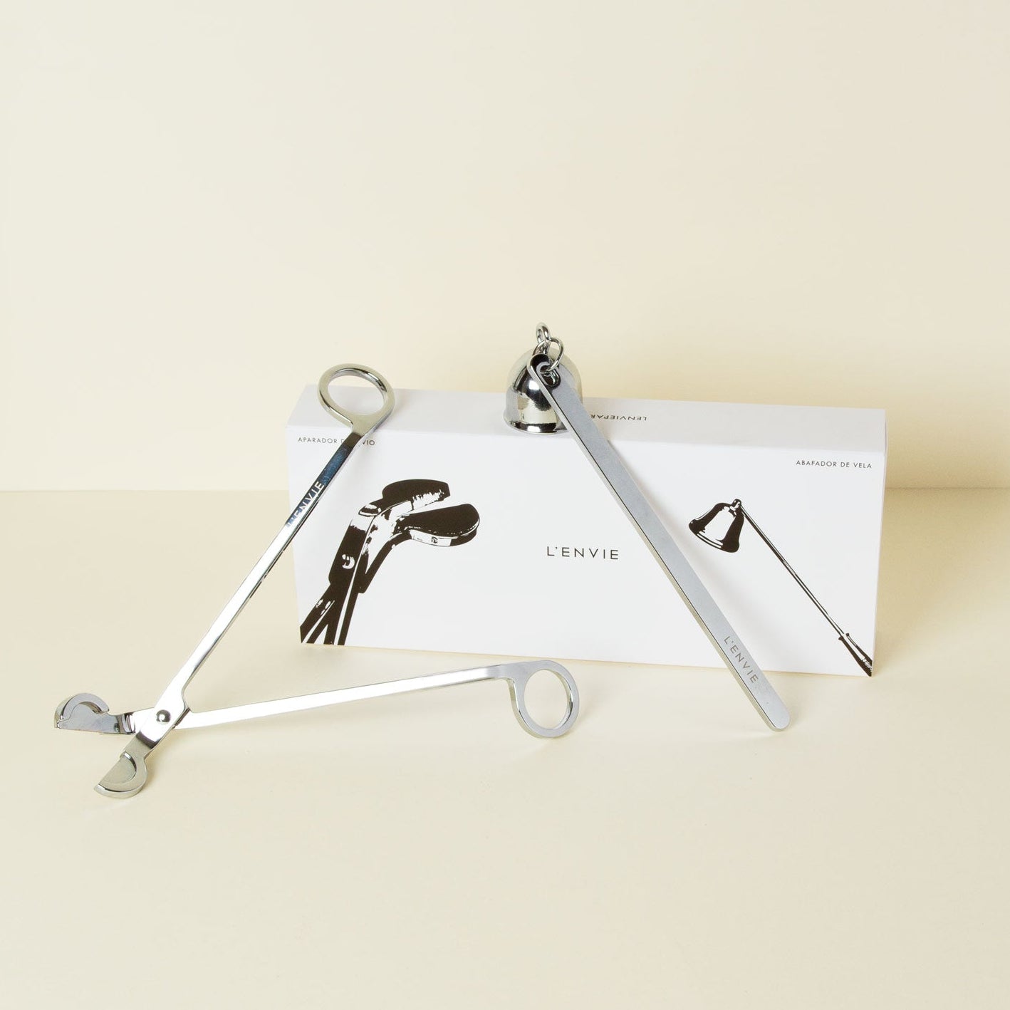 Elegante e funcional, o Conjunto de Acessórios para Velas LENVIE é composto por um aparador de pavio e um abafador, ambos produzidos em aço inoxidável de alta qualidade, resistente à ferrugem e com acabamento refinado em cor prata. Cada peça traz o logo LENVIE gravado, garantindo exclusividade e estilo.