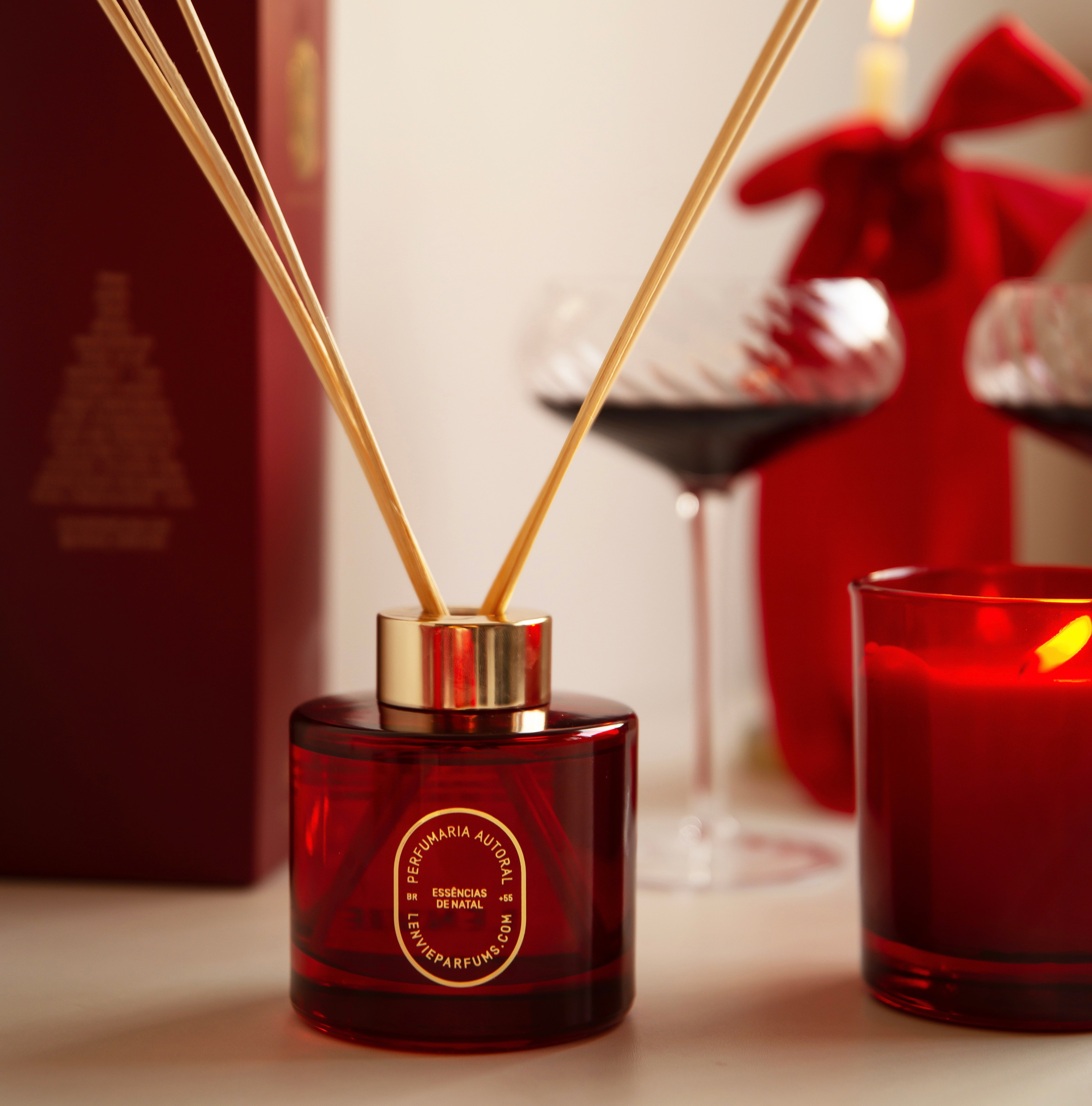 Envolva sua casa com o perfume acolhedor do Difusor de Aromas Maçã Vermelha e Canela, da coleção de Natal Lenvie.