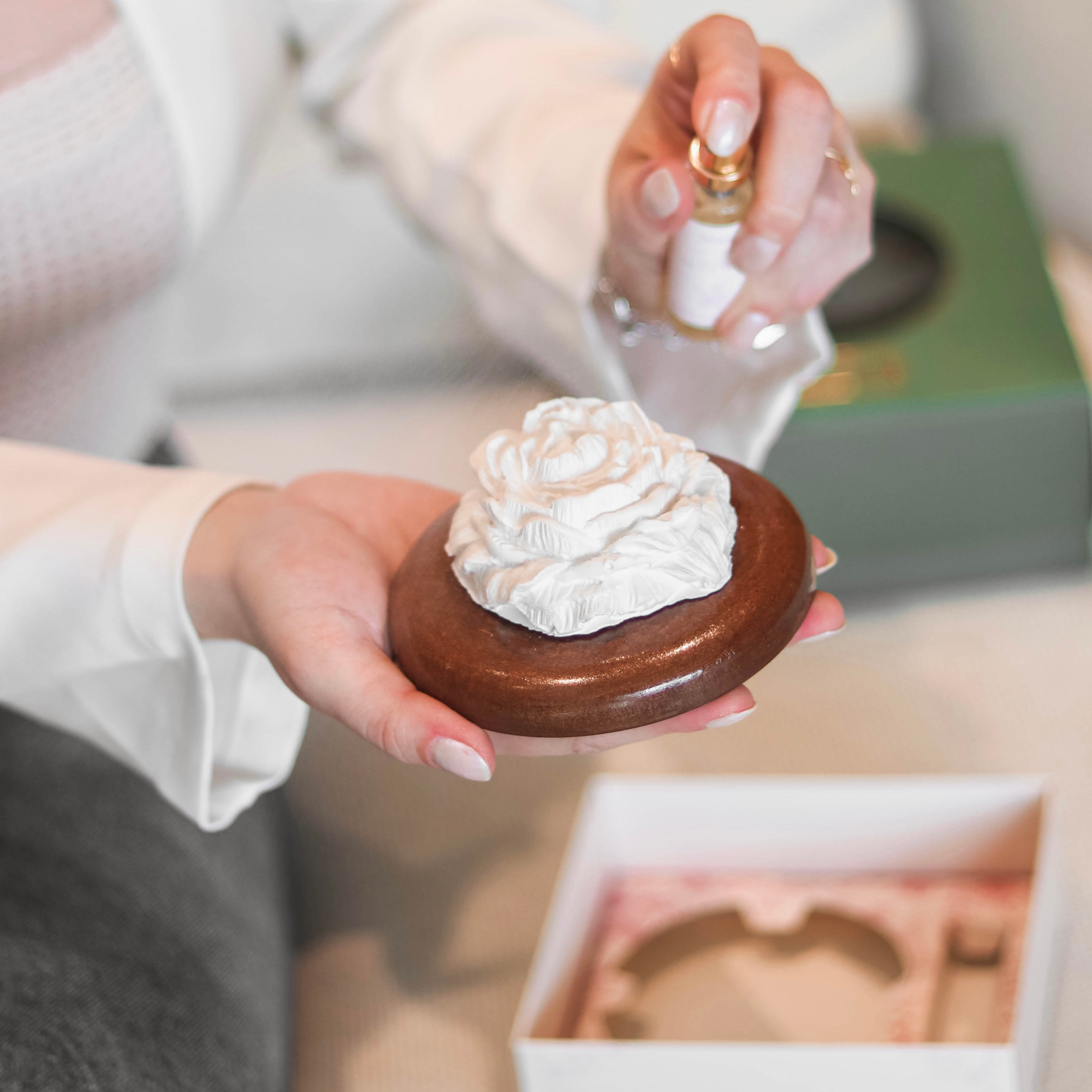 Basta borrifar sua fragrância favorita sobre o difusor para que ele absorva e libere o aroma de forma suave e contínua, mantendo o ambiente perfumado por mais tempo.