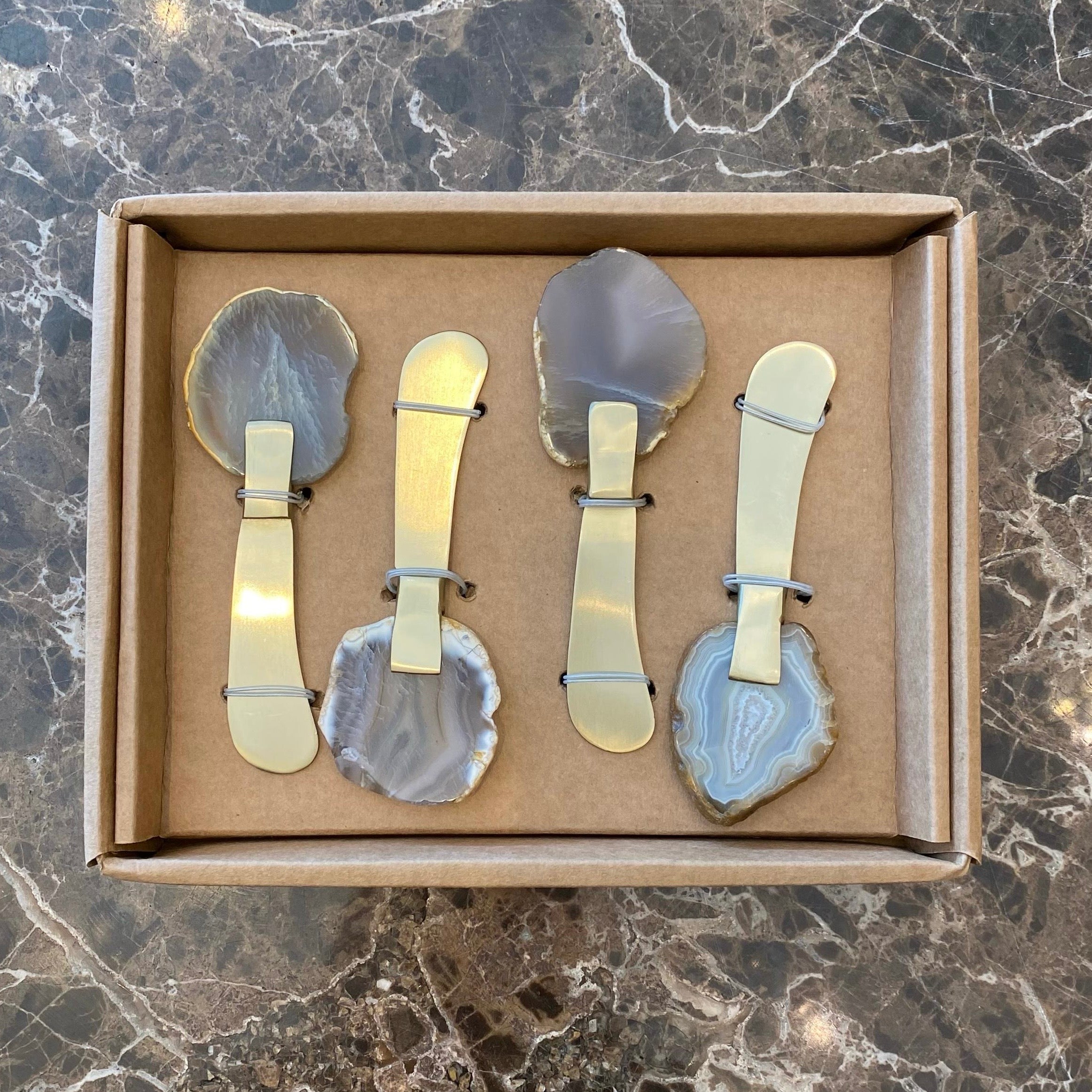 Kit para patês e geleias com pedra de Ágata ouro - 4 peças