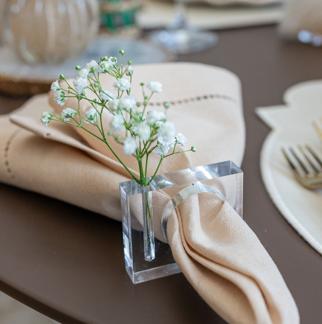 Feitos em acrílico resistente e de alta transparência, os porta guardanapos são leves, duráveis e fáceis de limpar. Seu formato de vasinho é perfeito para composições criativas com flores artificiais, raminhos ou outros detalhes decorativos.