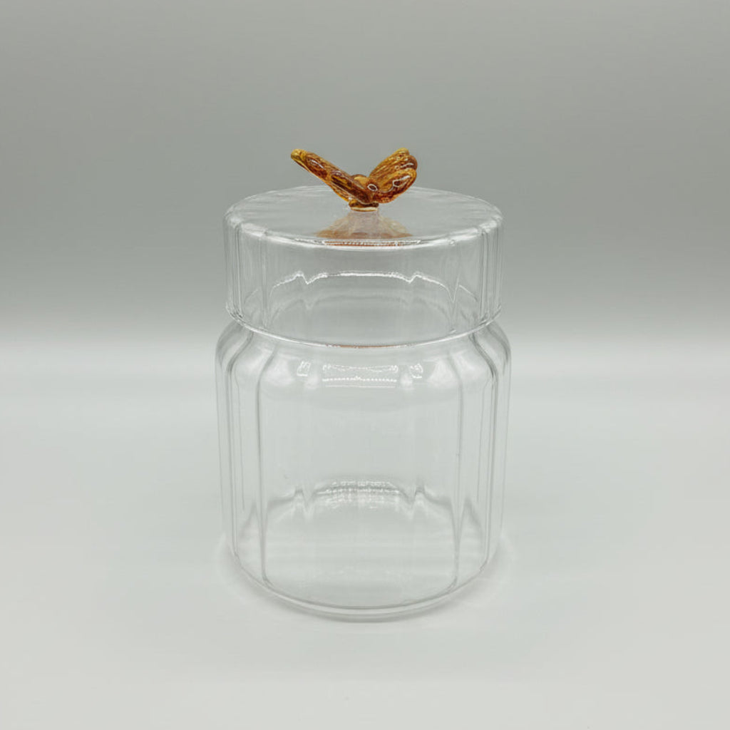 Pote em vidro com design canelado, desenvolvido para unir funcionalidade e sofisticação. Sua transparência valoriza o conteúdo interno, enquanto a tampa em vidro com detalhe decorativo em tom âmbar adiciona um toque artístico e refinado à peça. Versátil e atemporal, é ideal para organizar e compor diferentes ambientes com leveza, charme e cuidado estético, elevando a experiência visual e o uso cotidiano