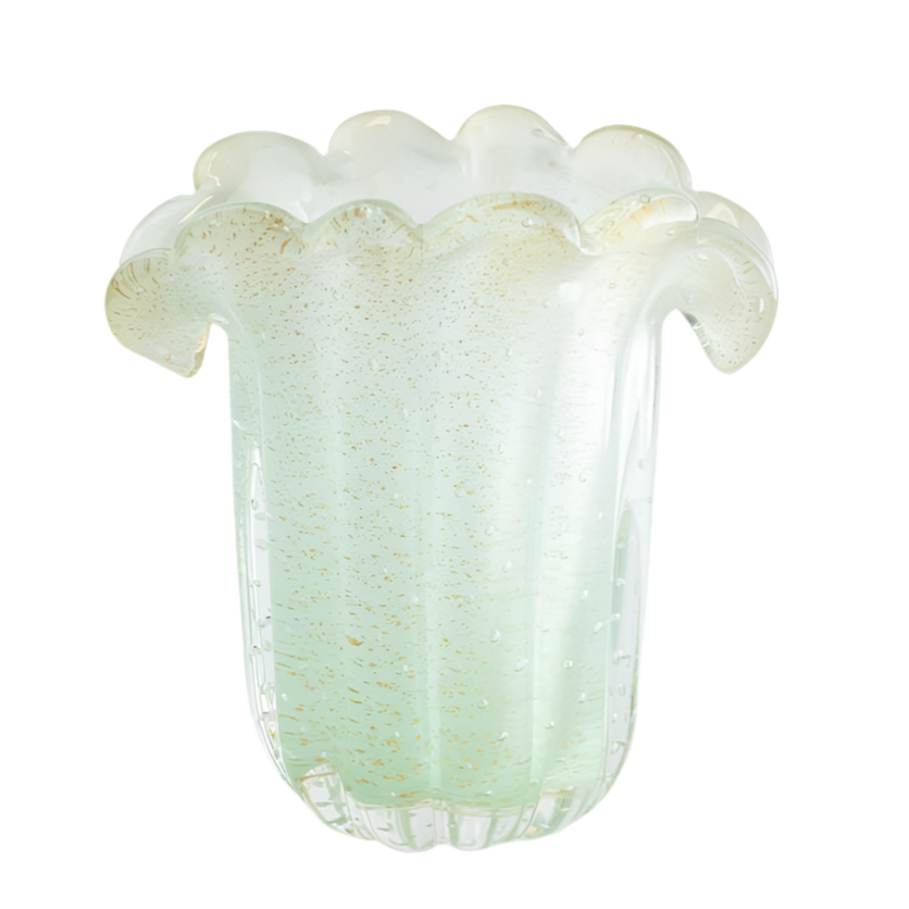 Vaso Leque G verde opalina em Murano com Pó de Ouro